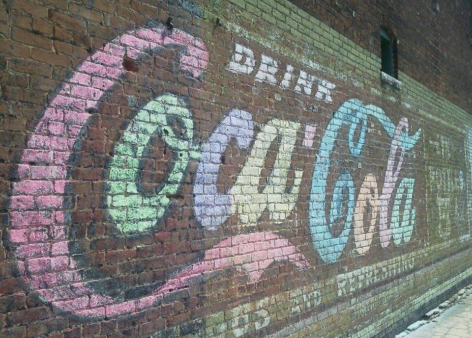Coke Sign on Square when colored by chalk vandals